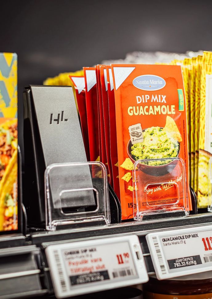 Suitable for shelving units as well as vertical refrigerated display cabinets.