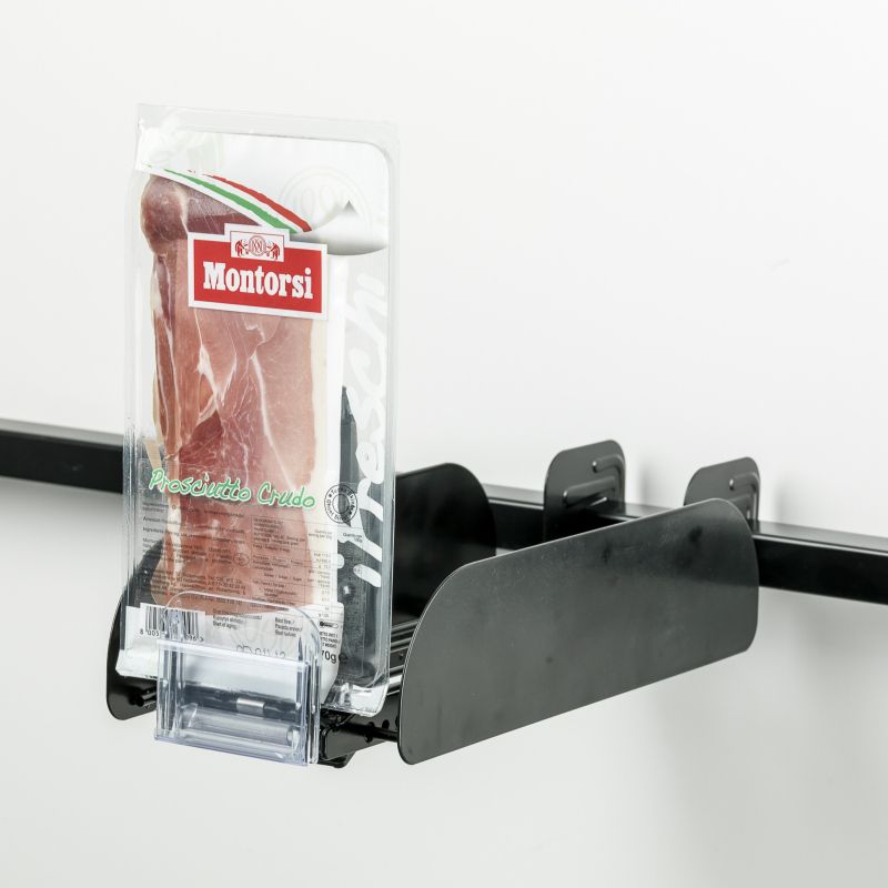 Професионална метална пушър касета за безрафтово оборудване, предназначена за по-широки продукти и по-тежки опаковки. Осигурява стабилен front-facing и постоянна подредба в търговска среда.