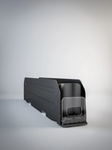 Метална пушър касета MULTIVO-MAX, специално разработена за подреждане и автоматично избутване на бутилки към предния борд на рафта.